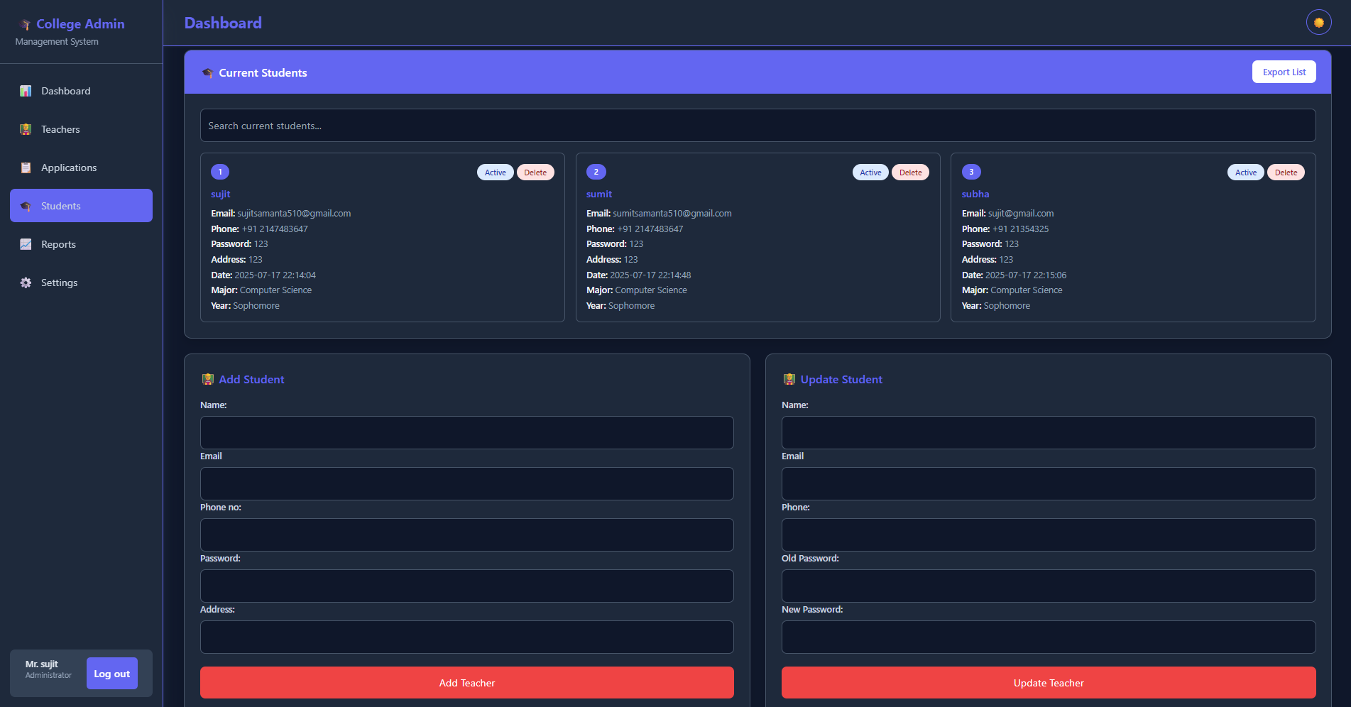 A collage management system with full-stack using PHP. Manage teachers, students, with real-time updates and team collaboration features.